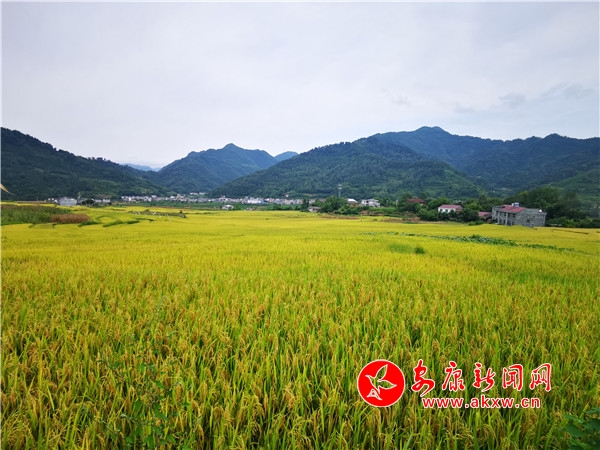 秋初,稻花飄香,微風(fēng)乍起,黃洋河兩岸的稻谷隨風(fēng)翻涌金波。稻田壟溝邊水流淙淙,田中稻花魚追逐嬉戲,村民在稻田里忙碌,歡聲笑語(yǔ)響徹田間。……