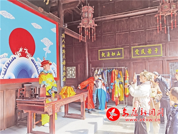 每到周末或節(jié)假日,石泉縣秦巴老街的古縣衙人頭攢動,走近一看,原來大家是在觀看情景劇“縣令審案”。“在古街上演情景劇,這種形式非常好,生動有趣,感覺自己穿越到了古代,特別有氛圍感。”安康市民王樂趁著周末,約上朋友一起到石泉老街游玩。