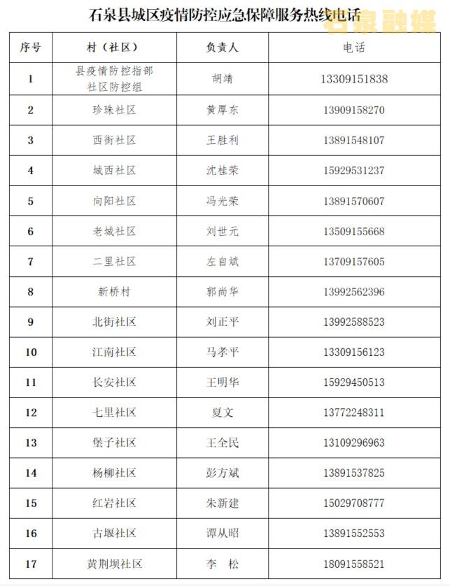 為保障市民生活,滿足群眾生活需求,現(xiàn)公布石泉縣城區(qū)應(yīng)急保障服務(wù)熱線電話,歡迎大家咨詢反映問題,我們將認真對待,快速反應(yīng),抓緊解決,最大限度降低防控期間給您生活帶來的影響。9yT安康新聞網(wǎng)