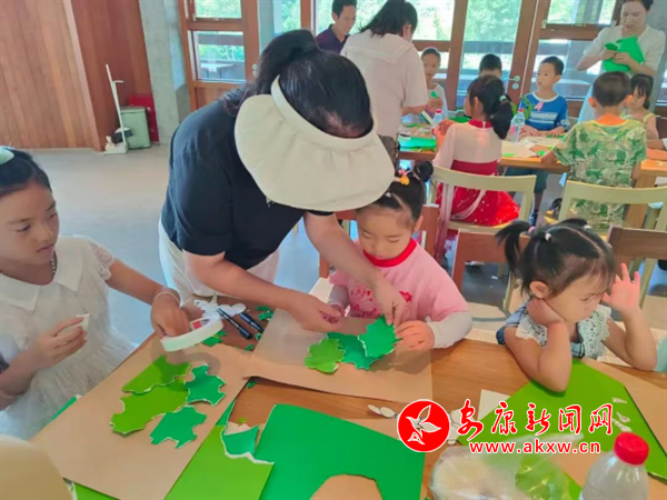 溫馨的活動室里,“愛心媽媽”們帶著滿滿的愛與關(guān)懷,與一群可愛的孩子們相聚在一起,孩子們一雙雙充滿期待的眼睛明亮而好奇地緊緊盯著“愛心媽媽”們,“愛心媽媽”溫柔地微笑著,拿起準(zhǔn)備好的彩紙、剪刀、膠水等材料,耐心地向孩子們講解今天的手工制作——蠶寶寶吃桑葉。從如何繪畫蠶寶寶,到怎樣拼剪出立體感的桑葉,“愛心媽媽”們一步步細(xì)致地示范著,孩子們?nèi)褙炞⒌伛雎、模仿著,雖然有些孩子一開始還不太熟練,但“愛心媽媽”們始終耐心地在他們身邊,一遍又一遍地重復(fù)著動作,給予鼓勵和引導(dǎo)。漸漸地,孩子們的小手開始靈活起來,他們認(rèn)真地繪畫、剪裁、粘貼著,不一會兒,一幅幅蠶寶寶吃桑葉的作品就出現(xiàn)在了他們的手中。孩子們看著自己親手創(chuàng)造的作品,臉上綻放出花朵般的笑容。
