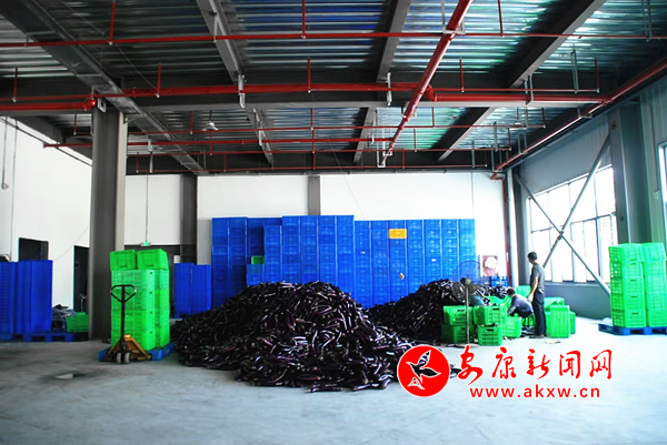 圖為豐產(chǎn)期的紫皮長茄被堆放在倉儲車間