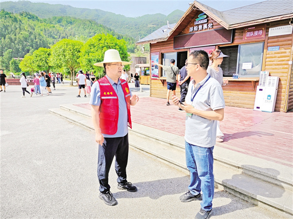 游客需要什么,黨員就做什么!今年“五一”期間,全鎮(zhèn)設(shè)立4個固定服務(wù)崗、30個流動服務(wù)點,配備2支摩托巡邏隊和200名志愿者,形成“點線面”結(jié)合的服務(wù)網(wǎng)絡(luò)。同時運用“智慧監(jiān)管云平臺”,整合無人機巡查、AI人流監(jiān)測等技術(shù)手段,實現(xiàn)景區(qū)客流精準(zhǔn)調(diào)控,贏得了廣大游客的爭相稱贊。