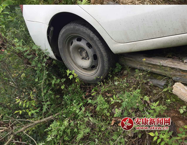 新手司機(jī)開車緊張致車掉下路沿 警民合力將車抬起