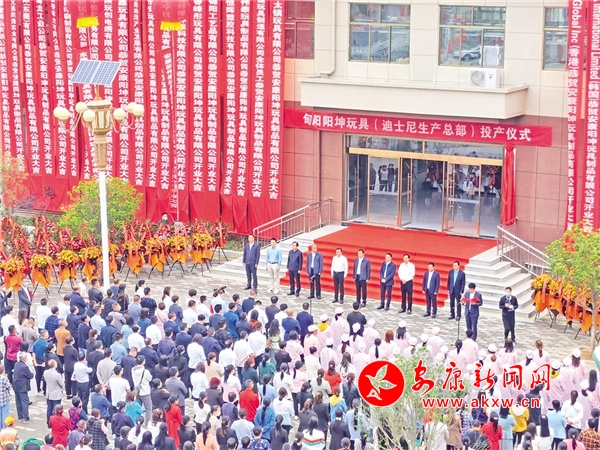 2022年5月10日,旬陽陽坤玩具(迪士尼玩具生產(chǎn)總部)投產(chǎn)儀式在蜀河新區(qū)舉行,項目年產(chǎn)1000萬件,于今年2月10日簽訂招商協(xié)議,僅用90天時間就完成了廠房裝修、設(shè)備安裝、員工招聘等工作。