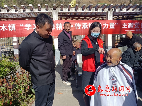 “你這頭發(fā)剪的挺短的,人看起來年輕了一大截,也精神多了;嗯,你的頭發(fā)還留了偏分,更年輕了呀”,敬老院的老年人高興地相互議論著。