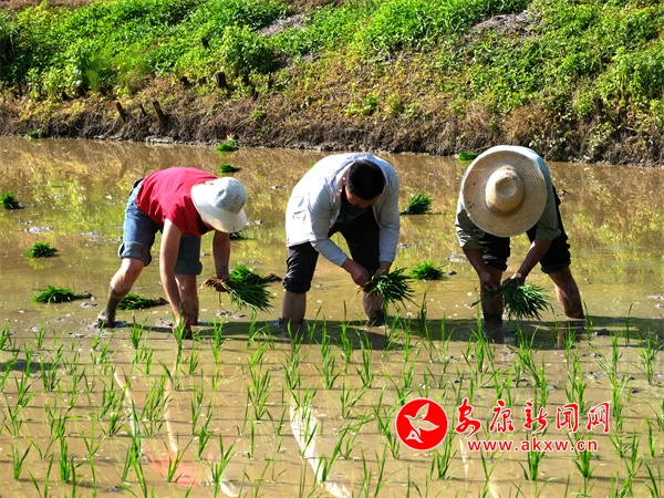 在王家坪、樓房村隨處可見稻田里村民們犁田翻耕、分秧、運(yùn)秧、插秧忙農(nóng)耕的身影。