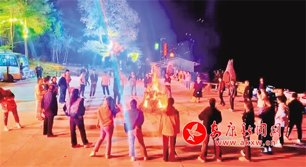夜幕降臨,篝火熊熊燃起,當動感的音樂響起,游客們手拉手圍成圈,繞著篝火載歌載舞,感受著熱烈的秋日浪漫,這一場景也成為此次活動的一大亮點。