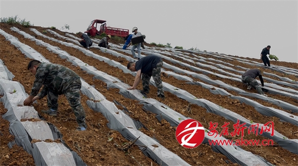 在認(rèn)真學(xué)習(xí)了技術(shù)人員傳授的“三壓三緊”科學(xué)覆膜技巧和移栽煙苗注意事項后,神河鎮(zhèn)干群3到4人為一組,或手持鋤頭開壟覆膜、打孔破膜,或躬身移栽煙苗,提水澆水護(hù)苗……大家分工明確、配合默契,田間地頭穿梭著忙碌的身影,此起彼伏的勞作聲與機(jī)械作業(yè)聲交織成一曲“抗旱保收”的奮進(jìn)樂章。