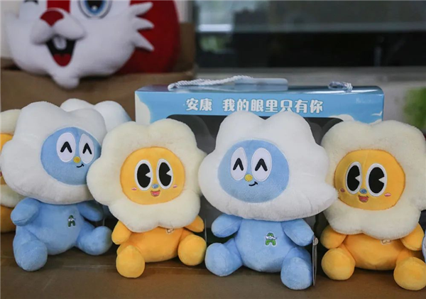 “把安康帶回家”——安安、康康兩個萌寵,寓意安康。藍色的萌寵代表藍天白云,代表我們優(yōu)美的自然環(huán)境,黃色向陽花,代表陽光、溫暖。兩個萌寵的眼睛,分別是“A、K”寓意,“安康,我的眼里只有你”!