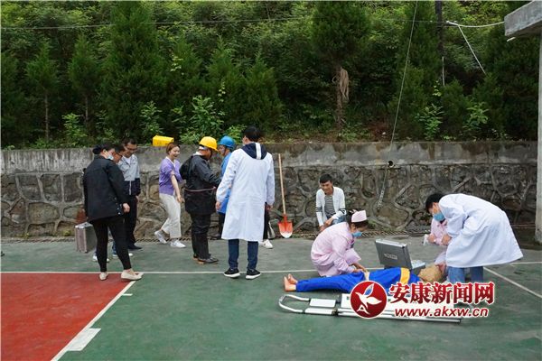 演練模擬事件背景 由于長(zhǎng)時(shí)間降雨,鎮(zhèn)坪縣醫(yī)院籃球場(chǎng)處發(fā)生大面積滑坡,滑坡面積蔓延至醫(yī)院大樓,導(dǎo)致至少1人被困,3人重傷,5人輕傷,滑坡仍在持續(xù)。值班室人員發(fā)現(xiàn)此事件后,立即向應(yīng)急辦公室報(bào)告。應(yīng)急辦立即將情況報(bào)告給潘院長(zhǎng)及主管局。潘院長(zhǎng)迅速趕到現(xiàn)場(chǎng)并宣布立即啟動(dòng)應(yīng)急預(yù)案、開通綠色通道。5分鐘內(nèi)醫(yī)療救援組、應(yīng)急聯(lián)絡(luò)與信息發(fā)布組、應(yīng)急搶險(xiǎn)組等8個(gè)工作組迅速到位,分別在各自崗位展開工作。SNt安康新聞網(wǎng)