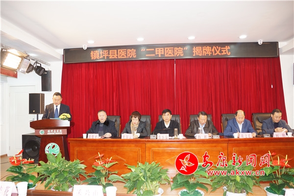 儀式上,市衛(wèi)健委宣讀了《關于授予鎮(zhèn)坪縣醫(yī)院二級甲等綜合醫(yī)院的批復》;楊彬和蔡小安為鎮(zhèn)坪縣醫(yī)院“二級甲等”醫(yī)院揭牌。儀式上,蔡小安、楊彬分別致辭,對鎮(zhèn)坪縣醫(yī)院獲得“二甲”醫(yī)院稱號表示祝賀并寄予深切厚望,希望鎮(zhèn)坪縣醫(yī)院全體職工繼續(xù)發(fā)揚艱苦奮斗、勇于拼搏的精神,抓住機遇,乘勢而上,在改革中探索,在管理上創(chuàng)新,在業(yè)務上求精,辦好鎮(zhèn)坪人自己的醫(yī)院,辦成老百姓滿意的醫(yī)院,為助力健康扶貧做出更大貢獻。陳文乾對鎮(zhèn)坪縣醫(yī)院以二甲創(chuàng)建為抓手,加強醫(yī)療質量安全管理,落實醫(yī)療核心制度,實現(xiàn)了醫(yī)院零糾紛的好成績,是2019年濃墨重彩的一筆。更加堅定了對口支援鎮(zhèn)坪縣醫(yī)院的決心和信心,并對緊密型醫(yī)共體建設和與鎮(zhèn)坪縣的醫(yī)養(yǎng)聯(lián)合體提出了意見和合理化建議。