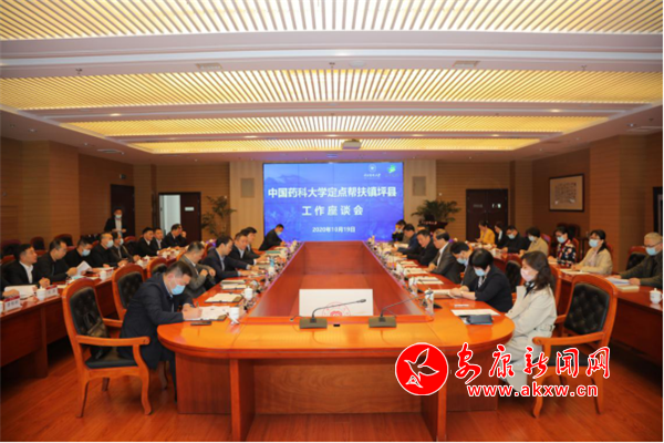 本網(wǎng)訊(通訊員 江濤 賀孝成)10月19日,中國藥科大學定點幫扶鎮(zhèn)坪縣工作座談會在中國藥科大學召開。中國藥科大學黨委書記金能明,校黨委常委、組織部部長陳永法,院系相關負責人和鎮(zhèn)坪縣委副書記、縣長李平,鎮(zhèn)坪縣委常委、組織部長魯延福,鎮(zhèn)坪縣委常委、副縣長涂世昌,鎮(zhèn)坪縣副縣長張杰出席會議,各鎮(zhèn)、有關部門負責人,20家企業(yè)代表參加會議,江蘇食品藥品職業(yè)技術(shù)學院校長馮鋒,江蘇食品藥品職業(yè)技術(shù)學院黨委組織部部長周耀明受邀參加會議,校黨委常委、副校長袁浩主持會議。