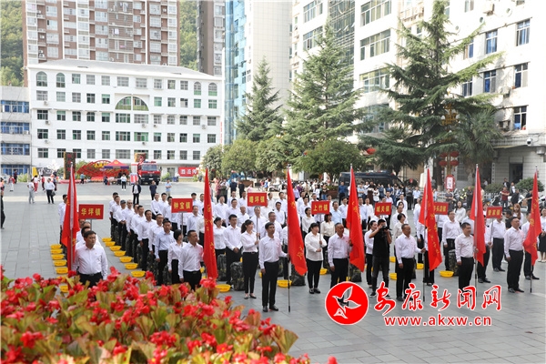 本網(wǎng)訊(通訊員 何丹 譚余倩)9月15日,鎮(zhèn)坪縣鄉(xiāng)村振興駐村第一書記出征儀式在縣政府廣場舉行,為即將奔赴鄉(xiāng)村振興一線的65名第一書記鼓勁壯行。
