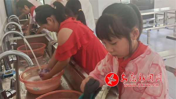 自己動手,豐衣足食。全體學生輪流為大家就餐服務,服務學生在早晨課前時間全程參與監(jiān)督廚房食材的出庫、加工、留樣過程;在午餐前15分鐘來到餐廳為同學打飯、端菜,在就餐結(jié)束后全體學生一起清洗餐具、打掃廚房;并做好每日食堂就餐服務日志。