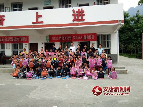 安康新聞網(通訊員 鐘定軍 劉成軍)陽光溫暖,風中飄香。5月31日下午,紫陽縣麗姐助學志愿者攜中國建設銀行義烏分行愛心公社在副縣長張麟的帶領下來到高橋鎮(zhèn)龍?zhí)缎W,用行動播撒愛的甘露:麗姐助學及義烏愛心公社為該校63名貧困學生傾注愛心,由麗姐助學為孩子們籌資送來了63套雨具(雨衣、雨鞋及鞋套);義烏愛心公社開展“愛心書包漂流”活動為孩子們買來63個書包,并且每個書包里面都配備有各種文具。孩子們依次伸出一雙雙稚嫩的小手,接過雨具和書包,此時每個孩子的臉上都綻放出快樂的笑容,校園里洋溢著濃濃的愛意。