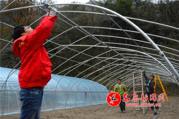 11月27日,筆者在蔬菜水果種植基地看到,扶貧隊員何正義正帶領(lǐng)十多位群眾搭建大棚。何正義介紹,在完善銷售平臺的同時,燎原村也在迅速培育增收產(chǎn)業(yè),新建五個大棚將用來種植冬棗的。