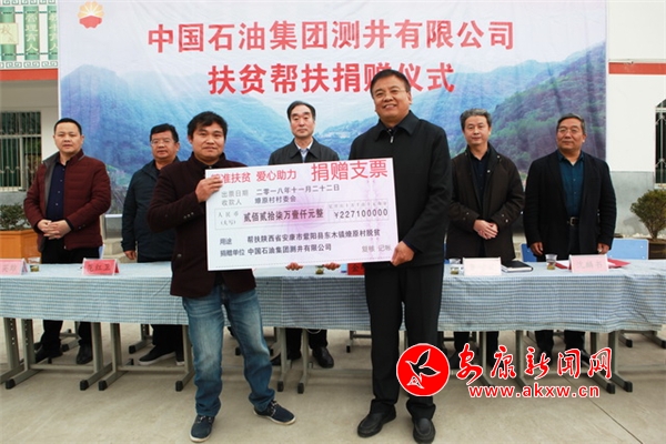 出人,出力,出智,還要大筆出錢。經(jīng)過中國石油集團(tuán)審批,測井公司為燎原村申請了227.1萬元幫扶資金。2018年11月22日,中國石油集團(tuán)測井有限公司黨委書記、副總經(jīng)理金明權(quán)親手將這一個扶貧“大禮包”送到燎原村。