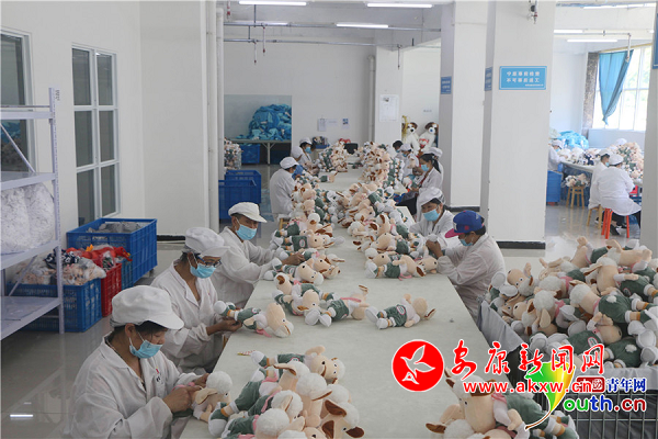 不過仍有部分人不能或不愿外出務工,他們又該如何增收?毛壩鎮(zhèn)瞄準了毛絨玩具生產(chǎn)加工,利用建設安置點形成的空閑場地,在2018年9月從江蘇揚州引進迪鑫玩具工廠,該廠于當年11月上旬正式開工生產(chǎn)。