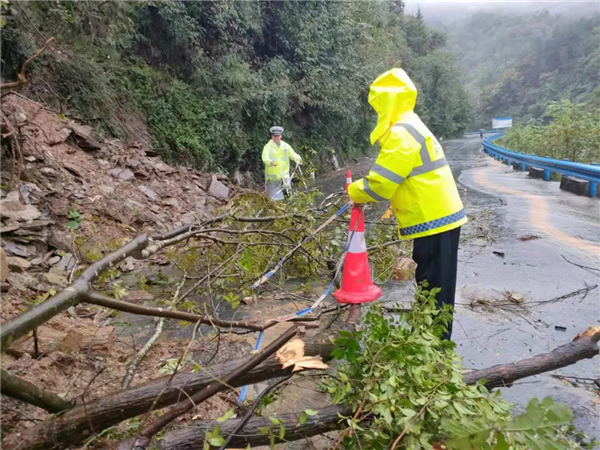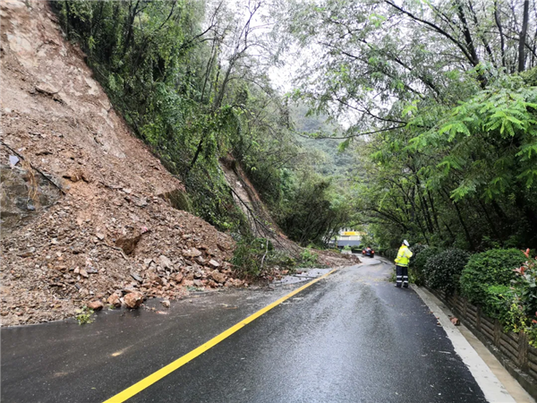 王家河村級道路因山體滑坡,路面積水嚴(yán)重,目前該路段已實施交通管制,請過往車輛不要強行涉險通過,服從現(xiàn)場工作人員的指揮。