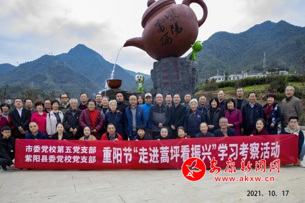 本網(wǎng)訊(通訊員 路永婷)金秋十月,重陽之際,市委黨校第五黨支部聯(lián)合紫陽縣委黨校黨支部,來到紫陽縣蒿坪鎮(zhèn)開展重陽節(jié)“走進蒿坪看振興”學(xué)習(xí)考察活動,市縣黨校三十余名退休干部職工參加。