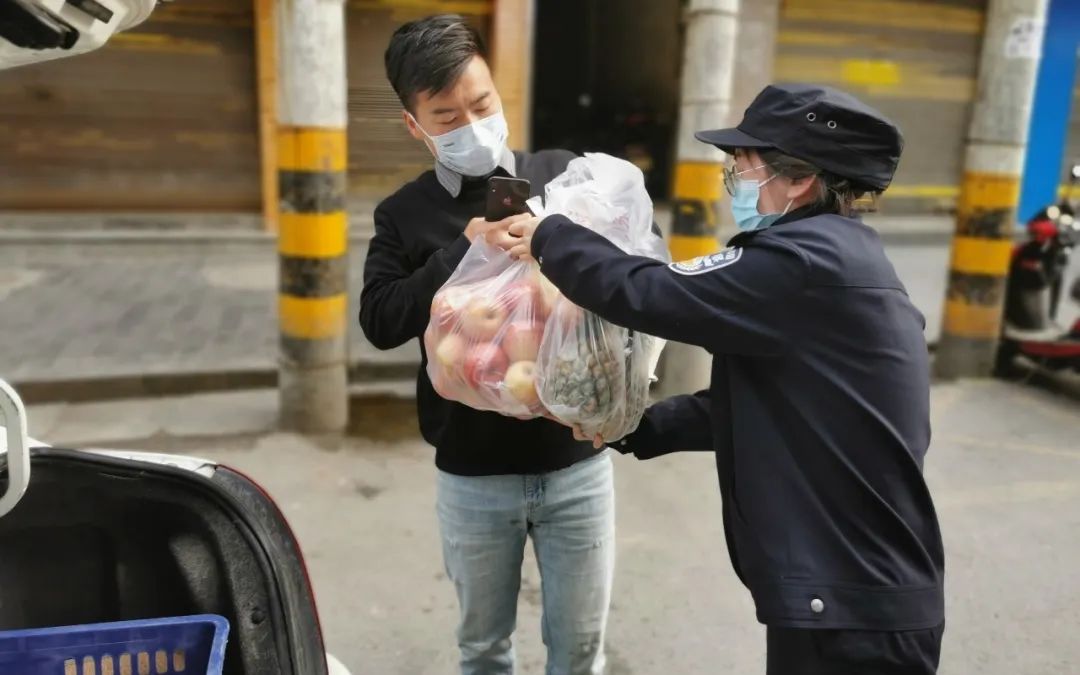 “大娘,你別急,請你放心,我們馬上把蔬菜給你送到”;“閨女,謝謝你!我給你錢”;“大娘不用給錢,算我盡點兒心意”。4月3日,負責雞家咀28號樓封控工作的民警蔡小敏得知獨居老人譚大娘沒有菜吃,立即自掏腰包購買了蔬菜、水果送到大娘手中,大娘硬要塞錢給她,蔡小敏婉言拒收。