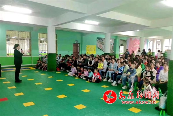 紅椿法庭從小朋友的年齡特點(diǎn)出發(fā),通過播放動(dòng)畫片《小豬佩奇》的形式向小朋友們宣講法律知識(shí),并將動(dòng)畫故事與現(xiàn)實(shí)案例相結(jié)合,從動(dòng)畫中提煉法律知識(shí),通過看、問、答的形式讓小朋友們在歡樂輕松的氛圍中增長了法律知識(shí),F(xiàn)場以法徽為切入點(diǎn),通過觸摸觀察、問答互動(dòng)等方式,從法徽的組成部分向小朋友們介紹了法徽的含義以及“法是什么”“法院又是干什么的”,讓小朋友們零距離地感受到了“法”。此外,還通過宣講和發(fā)放宣傳手冊等方式向到場的家長們普及了有關(guān)“監(jiān)護(hù)人責(zé)任”方面的法律知識(shí),讓學(xué)生家長充分認(rèn)識(shí)到保障未成年人合法權(quán)益需要大家共同努力。