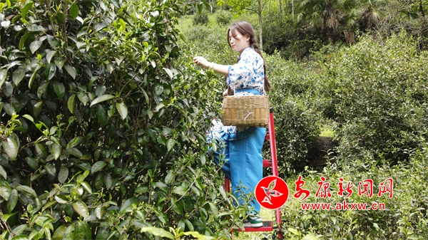 茶農(nóng)陳新艷趁著采茶間隙時間告訴我們:“采摘這些古樹茶葉,最大的不同就是要搭樓梯,因為茶樹有2個人這么高,達(dá)到三四米,葉片很厚實,采的時候有一股特別的清香縈繞在指尖,真是一種享受。”