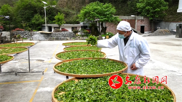 4月28日,紫陽壹封天葉茶業(yè)有限公司技術(shù)人員正在對采摘回來的古茶樹鮮葉進(jìn)行攤晾。通訊員 儲茂銀攝