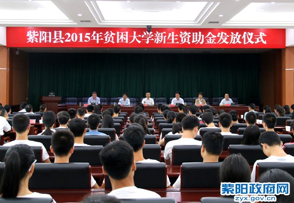 8月18日,紫陽縣委、縣政府舉行2015年貧困大學新生資助金發(fā)放儀式,為100名貧困大學新生現(xiàn)場發(fā)放了資助金,確保他們順利入學?h長趙立根首先對考上大學的莘莘學……