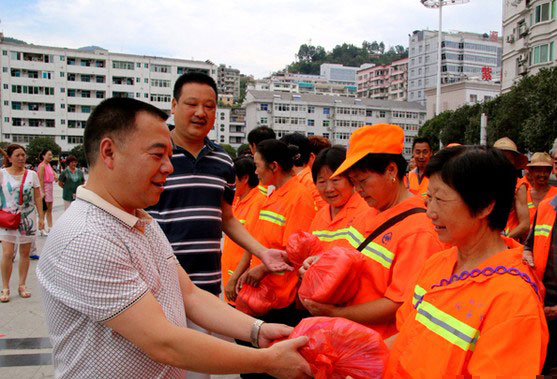炎炎夏日,驕陽似火。8月3日上午,由紫陽縣規(guī)劃局、縣雙創(chuàng)辦組織的為奮戰(zhàn)在城市保潔一線的環(huán)衛(wèi)工人送清涼慰問活動(dòng)在縣城廣場舉行。為環(huán)衛(wèi)工人送去了毛巾、水杯、……