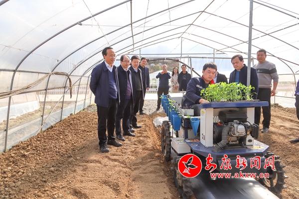 在漢陰縣七葉蓮農(nóng)業(yè)科技有限公司蔬菜種植基地,魯琦走進(jìn)溫室育苗棚和蔬菜大棚,詳細(xì)了解辣椒、黃瓜、西紅柿等蔬菜育苗及旋耕機(jī)整地、辣椒機(jī)械化栽植情況,對(duì)公司“六統(tǒng)一”發(fā)展方式給予充分肯定。他說,要以“1+10+N”蔬菜保供基地建設(shè)為契機(jī),圍繞提升設(shè)施裝備、科技支撐、組織經(jīng)營(yíng)現(xiàn)代化水平,聚力推進(jìn)高標(biāo)準(zhǔn)農(nóng)田、冷鏈物流等基礎(chǔ)設(shè)施建設(shè),持續(xù)在農(nóng)機(jī)推廣、質(zhì)量控制、品牌打造、產(chǎn)銷對(duì)接上下功夫,加快完善蔬菜生產(chǎn)保供體系,不斷提升蔬菜自給率,確保“菜籃子”安全穩(wěn)產(chǎn)保供。
