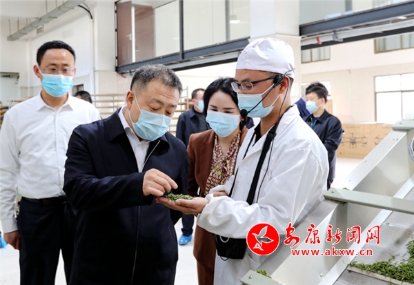 市長武文罡(左二)在長安鎮(zhèn)田珍茶業(yè)調(diào)研茶葉生產(chǎn)加工情況(攝影:李世鋒)