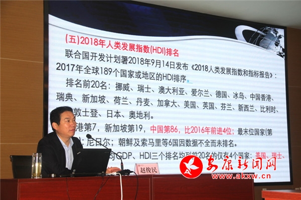 揭牌活動后,趙俊民以“對高質(zhì)量發(fā)展實現(xiàn)路徑的思考和建議”為主題,緊扣宏觀形勢與省市經(jīng)濟運行,圍繞高質(zhì)量發(fā)展的內(nèi)涵要求和實現(xiàn)路徑,為安康學院師生作經(jīng)濟形勢專題輔導。趙俊民指出,高質(zhì)量發(fā)展就是能夠很好滿足人民群眾物質(zhì)、文化、民主、法治、公平、正義、安全、環(huán)境等方面日益增長的需要,注重平衡、充分發(fā)展,體現(xiàn)新發(fā)展理念的發(fā)展方式。推動高質(zhì)量發(fā)展,是適應經(jīng)濟發(fā)展新常態(tài)的主動選擇,是貫徹新發(fā)展理念的根本體現(xiàn),是適應我國社會主要矛盾變化的必然要求,是建設現(xiàn)代化經(jīng)濟體系的必由之路。