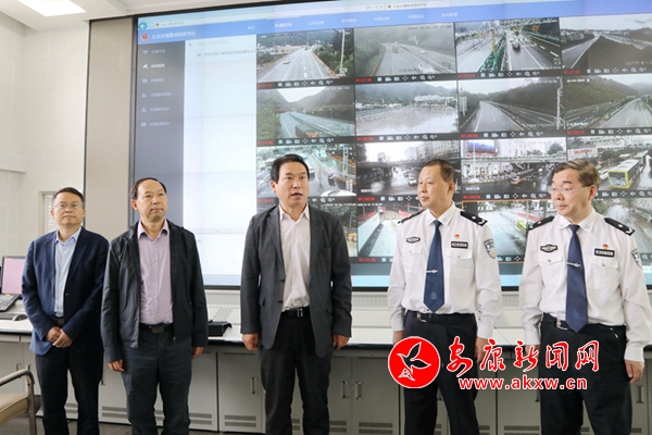 在市公安局交警支隊(duì)交通應(yīng)急指揮中心大廳,趙俊民通過監(jiān)控大屏實(shí)時(shí)查看全市各重要路段、路口的通行情況,聽取雙節(jié)交通保暢情況匯報(bào)。他強(qiáng)調(diào),要充分發(fā)揮指揮中心的“神經(jīng)中樞”作用,進(jìn)一步落實(shí)好“122、125”路警聯(lián)勤聯(lián)動(dòng)機(jī)制,抓住重要節(jié)點(diǎn)和重要路段,切實(shí)做到快速預(yù)警、快速研判、快速處置,為群眾創(chuàng)造便捷、順暢、平安的節(jié)日出行環(huán)境。