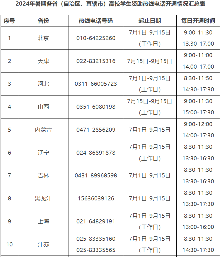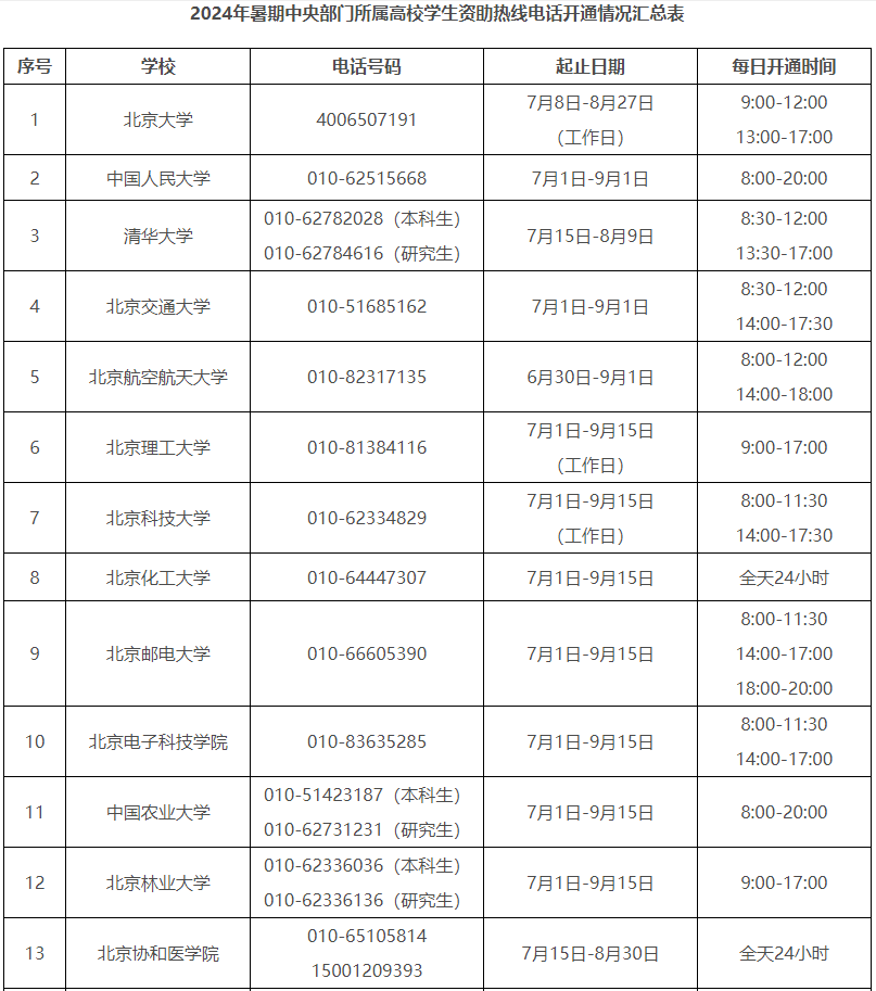各。ㄗ灾螀^(qū)、直轄市)和中央部門所屬高校同步開通了熱線電話,電話號碼與開通時間可查看匯總表。