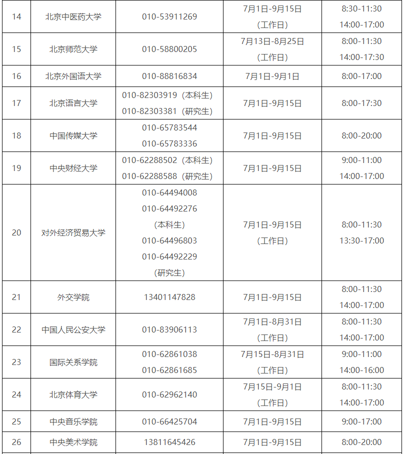 受理時間:7月1日-9月15日(工作日)8:00-12:00 15:00-18:00