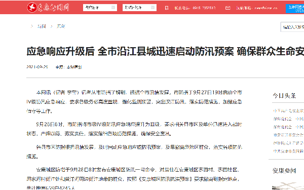 在災(zāi)難和事故報(bào)道中,安康新聞網(wǎng)秉承“人民至上、以人為本”理念,如在《應(yīng)急響應(yīng)升級后 全市沿江縣城迅速啟動防汛預(yù)案 確保群眾生命安全》報(bào)道,重點(diǎn)聚焦應(yīng)急響應(yīng)升級后全市沿江縣城迅速啟動防汛預(yù)案情況,確保人民群眾生命安全。同時安康新聞網(wǎng)還針對一些公共安全事件或突發(fā)事件,及時發(fā)布防御知識和相關(guān)科普內(nèi)容。dUZ安康新聞網(wǎng)