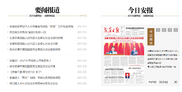 “安康兩會”融媒體報(bào)道專題頁面展示dUZ安康新聞網(wǎng)