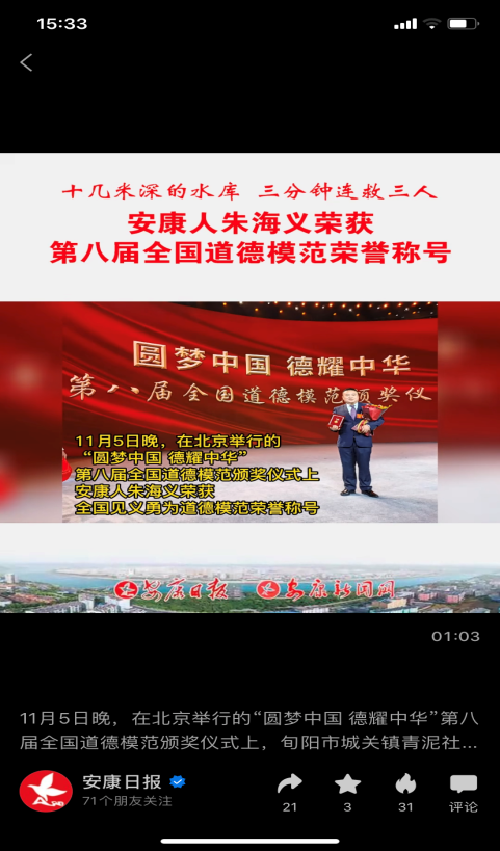 安康日報(bào)微信視頻號發(fā)布“第八屆全國道德模范朱海義”dUZ安康新聞網(wǎng)