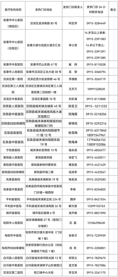 我市二級以上醫(yī)療機構(gòu)發(fā)熱門診公開信息