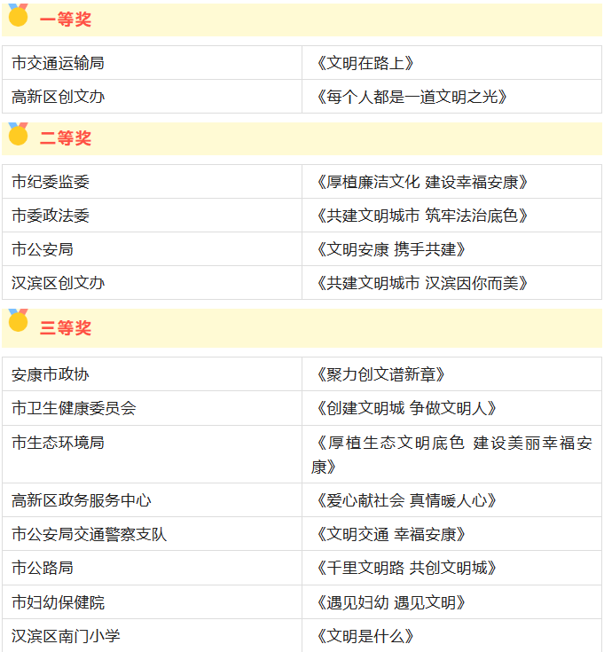 (獎(jiǎng)項(xiàng)內(nèi)排名不分先后) rzR安康新聞網(wǎng)