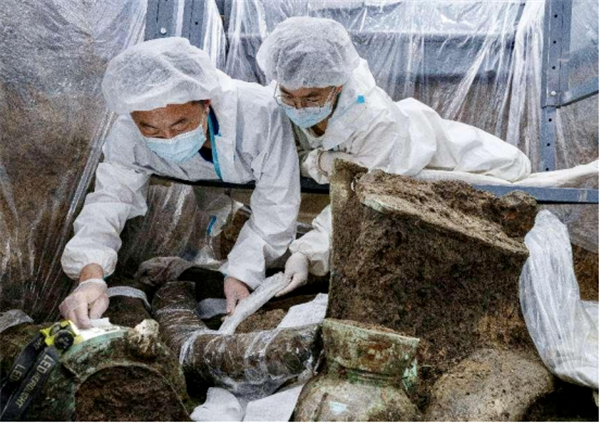 2019年秋,三星堆遺址祭祀坑區(qū)考古發(fā)掘重啟,新發(fā)現(xiàn)的6個(gè)“器物坑”發(fā)掘出土青銅器、金器、玉器、牙雕等文物共計(jì)17000余件,包括青銅大面具、青銅神壇等重要文物,“再醒驚天下”。