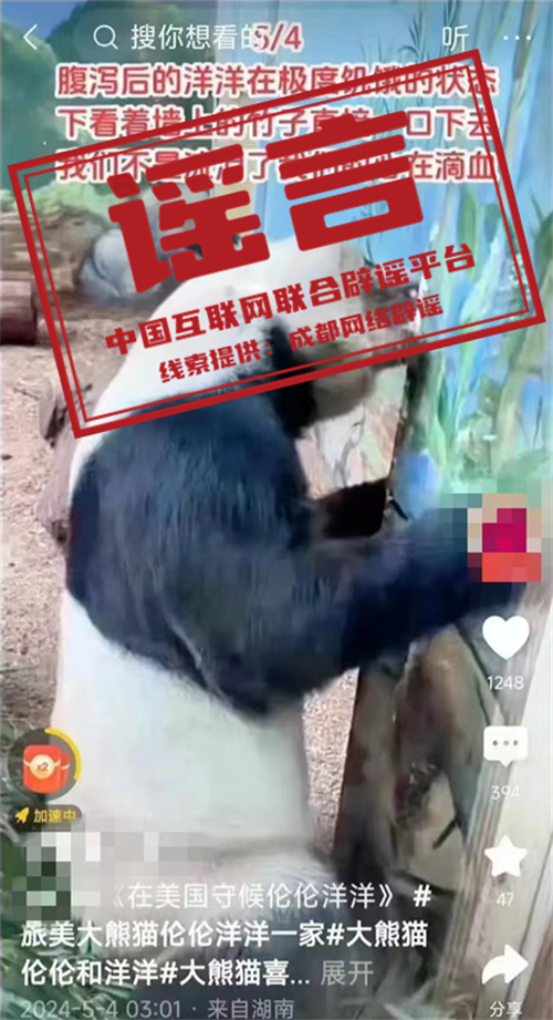 謠言:旅美大熊貓“洋洋”口吐白沫、餓得啃墻皮?