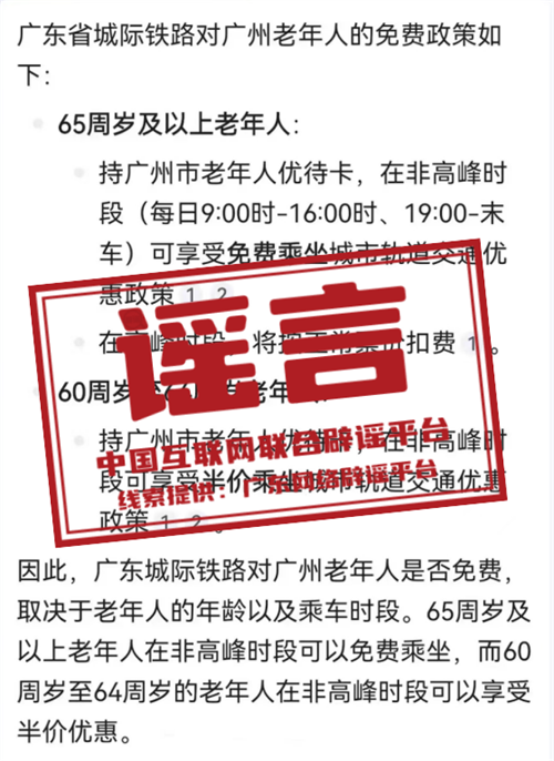 謠言:持廣州市老年人優(yōu)待卡可免費(fèi)乘坐城際列車?