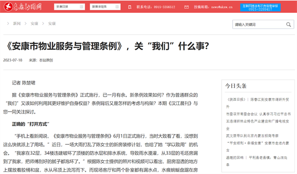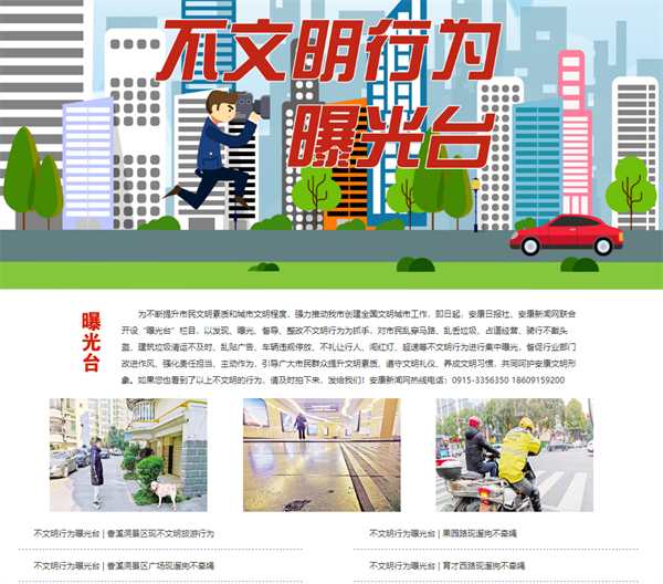 安康新聞網(wǎng)履行媒體輿論監(jiān)督職能,聚焦民生熱點(diǎn),開辦《不文明行為曝光臺》輿論監(jiān)督專欄,集中曝光身邊的不文明現(xiàn)象、行為,引導(dǎo)市民群眾自覺規(guī)范文明行為,主動融入城市文明創(chuàng)建熱潮,為提升市民文明素質(zhì)和城市文明程度貢獻(xiàn)媒體力量。同時(shí),聚焦群眾關(guān)切,積極開展調(diào)查性報(bào)道,發(fā)布《〈安康市物業(yè)服務(wù)與管理?xiàng)l例〉關(guān)“我們”什么事?》等一批原創(chuàng)新聞,還原事件真相,及時(shí)宣講與群眾生活息息相關(guān)的最新政策條例,體現(xiàn)地方黨媒的責(zé)任與擔(dān)當(dāng)。