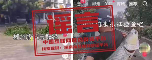 7月28日,某短視頻平臺出現(xiàn)兩段視頻,一段是城市街道被洪水淹沒并配文“郴州版城市取經(jīng)”的視頻;另一段是暴雨過后在積水中抓魚并配文“友友們來東江撿魚吧”的視頻。經(jīng)湖南郴州網(wǎng)信部門核實,相關視頻系網(wǎng)民惡意拼湊,郴州并未出現(xiàn)視頻所述情況。網(wǎng)信部門已將謠言線索移交公安部門依法處置。