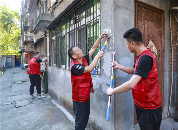 2022年7月21日早上,靜寧社區(qū)領(lǐng)導(dǎo)、工作人員及志愿者;市民政局、市兒童褔?yán);市人壽公司等單位都派出多名工作人員,在社區(qū)轄內(nèi)靜寧小區(qū),幫助廢舊垃圾、廣告的清理。v4E安康新聞網(wǎng)
