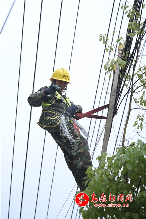 電信通信工作人員在劉家砭地段進(jìn)行線纜整治