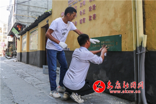 7月21日, 城區(qū)五星街社區(qū)組織人員,對(duì)五星街的背街小巷進(jìn)行清理,粉刷墻面,書寫標(biāo)語(yǔ)。(李春江)ygN安康新聞網(wǎng)