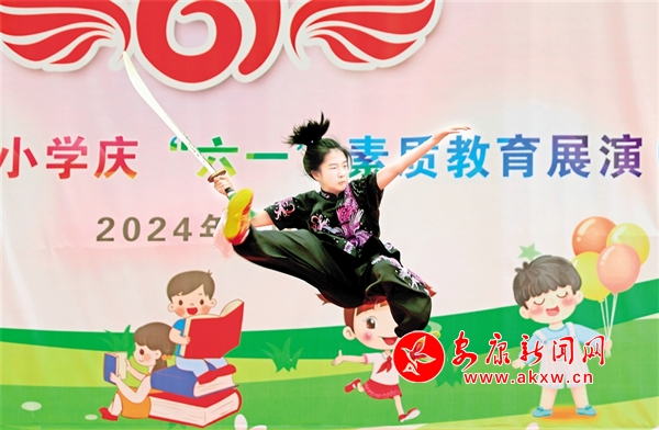平利縣各小學(xué)、幼兒園開展多種活動(dòng),喜迎“六一”國際兒童節(jié)。圖為平利縣城關(guān)小學(xué)的學(xué)生在表演武術(shù)。沈奕君 攝
